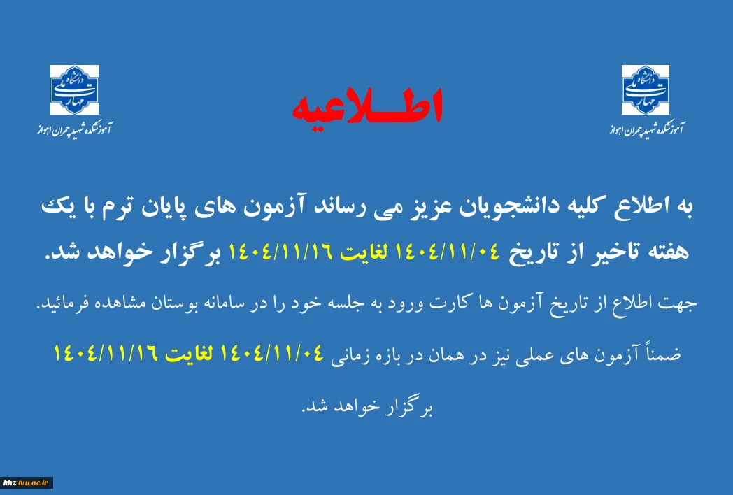 تاریخ امتحانات پایانی نیمسال مهر 1404 2